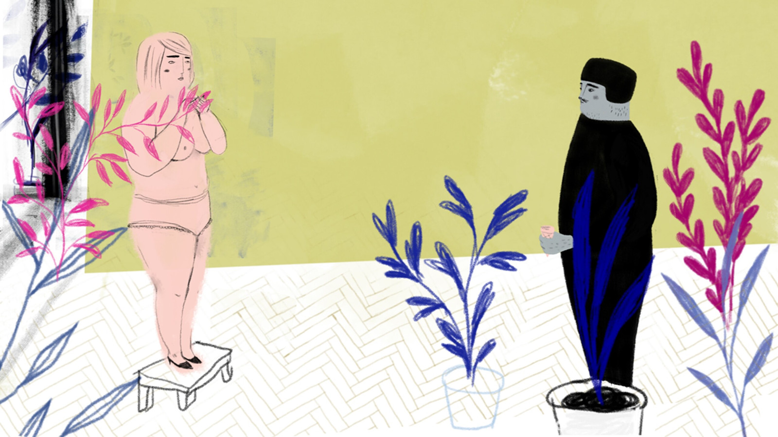 A woman is being watched every day by the neighbor’s cat, as she takes care of her exotic plants. Their perverted ritual comes to an end when the cat disappears. Next spring a peculiar stranger pays her a visit.