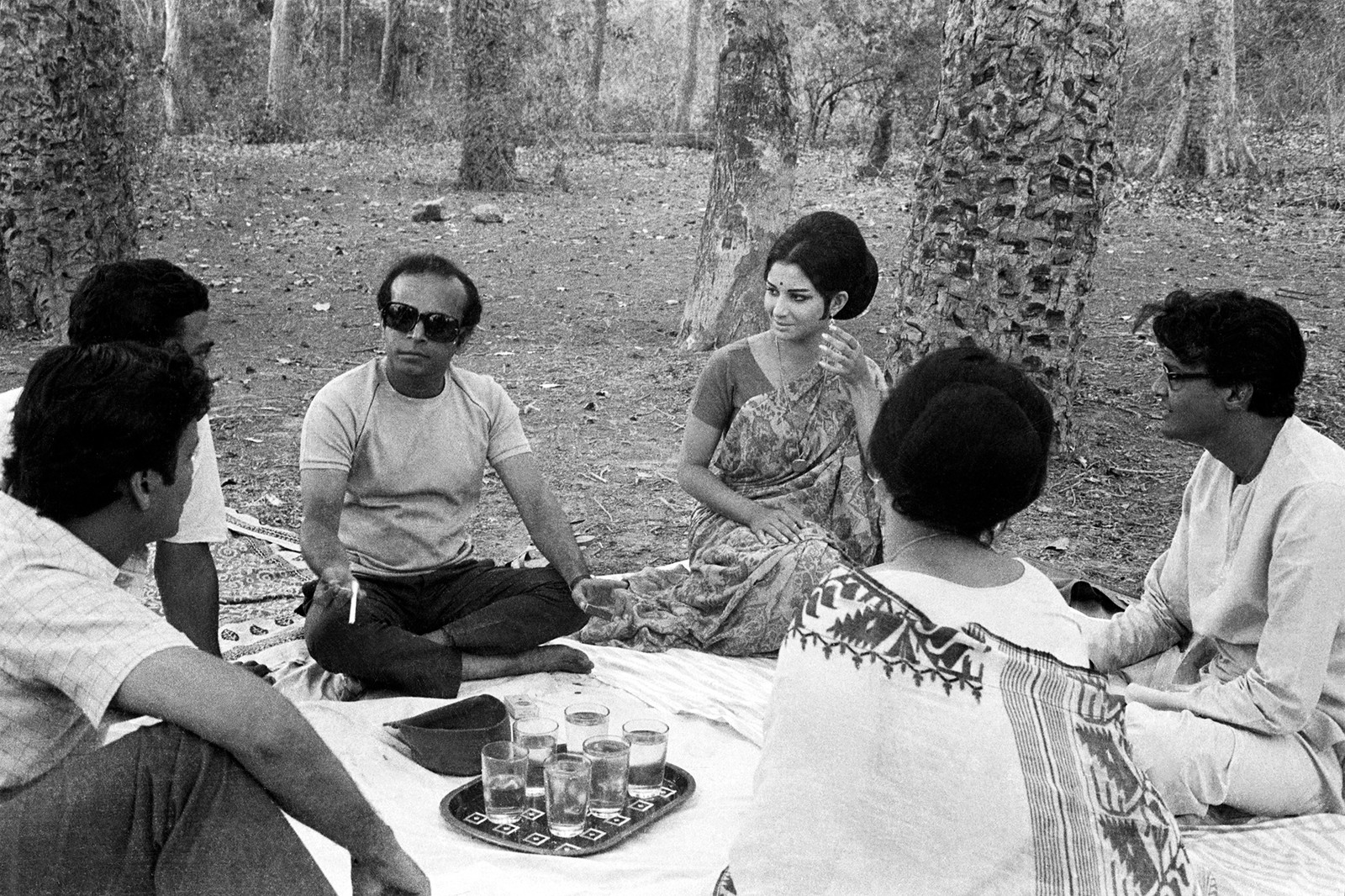 (DAYS AND NIGHTS IN THE FOREST)In a work that confirms Satyajit Ray’s place amongst the masters of world cinema, Days and Nights in the Forest tells the tale of four brash young men from the city who set out on a lark to the forests of Jharkhand to escape their mundane urban lives, not realizing that it will challenge their views on life and love and blunt their confidence. The arrogant Asim is attracted to the cool and elegant Aparna who crushes his pride with ruthless subtlety. The shy and inhibited Sanjoy lacks the courage to respond to Jaya’s advances. The sportsman Hari tries to forget his heartbreak enamoured by a sensual tribal girl, while Shekhar, the joker of the group seems unperturbed by the underlying tensions and inner turmoil of his friends.