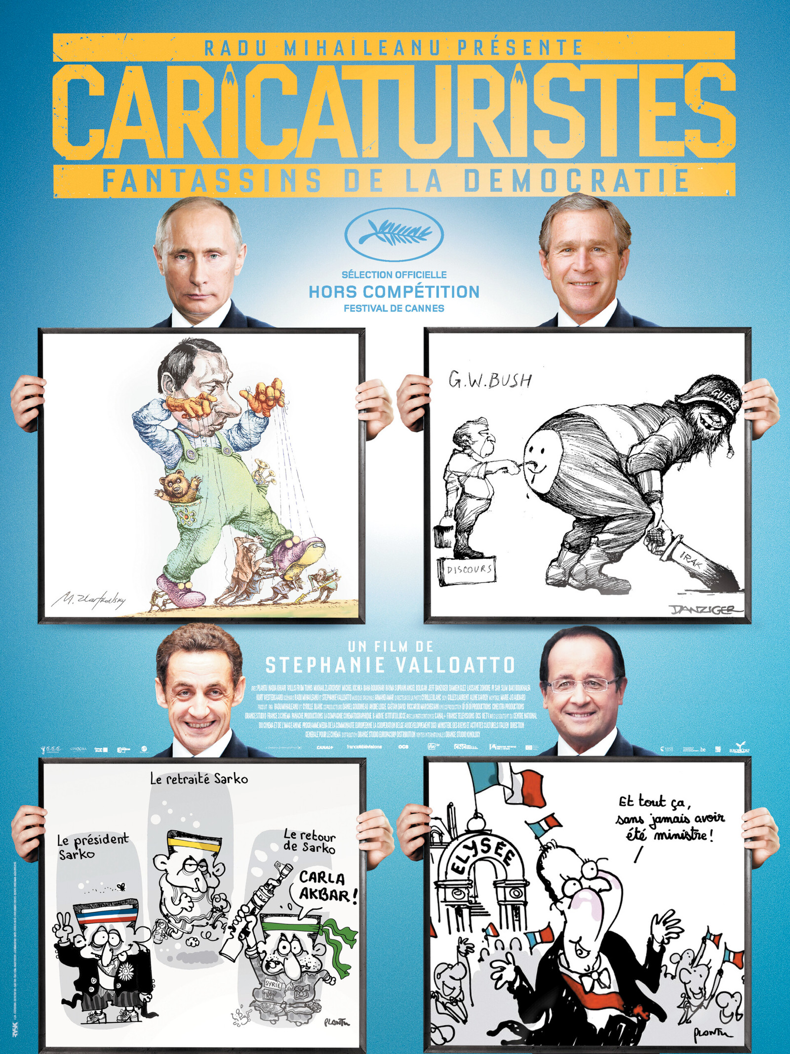(CARTOONISTS - FOOT SOLDIERS OF DEMOCRACY)12 loveable lunatics, capturing the comic and tragic in all four corners of the earth: cartoonists who risk their lives to defend democracy, with a smile on their faces and a pencil as their only weapon. They are French, Tunisian, Russian, American, Burkinabe, Chinese, Algerian, Ivorian, Venezuelan, Israeli and Palestinian.