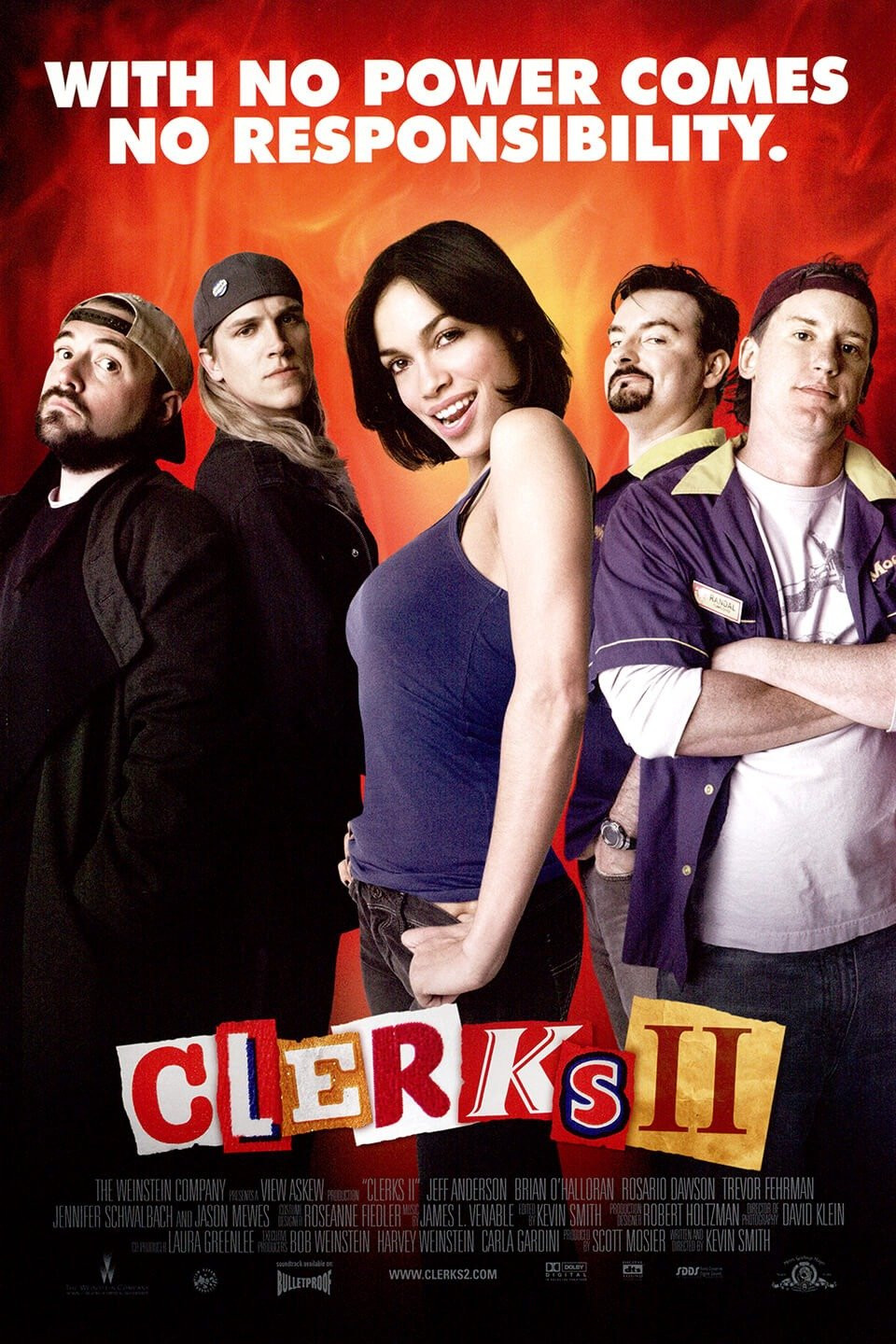 At the age of 33, New Jersey mini-mart clerks and best friends Dante Hicks and Randal Graves have it made, they work with each other, slack off all day, and get paid for it. But when the local Quick Stop that has been their entire life and livelihood suffers a cataclysm, Dante and Randal have to do the unthinkable: find new minimum-wage jobs. Now, they’re bringing their rapid-fire one-liners, bad attitudes and unbridled love of fun at the customer’s expense to Mooby’s burger joint, where the only other employees are an uber-nerd and an entirely too sexy manager. But when Dante announces that he’s going to leave Jersey forever and marry Emma Bunting, his co-workers plan one last send-off that quickly goes awry. As unbridled debates rage over such burning matters as Return of the King v