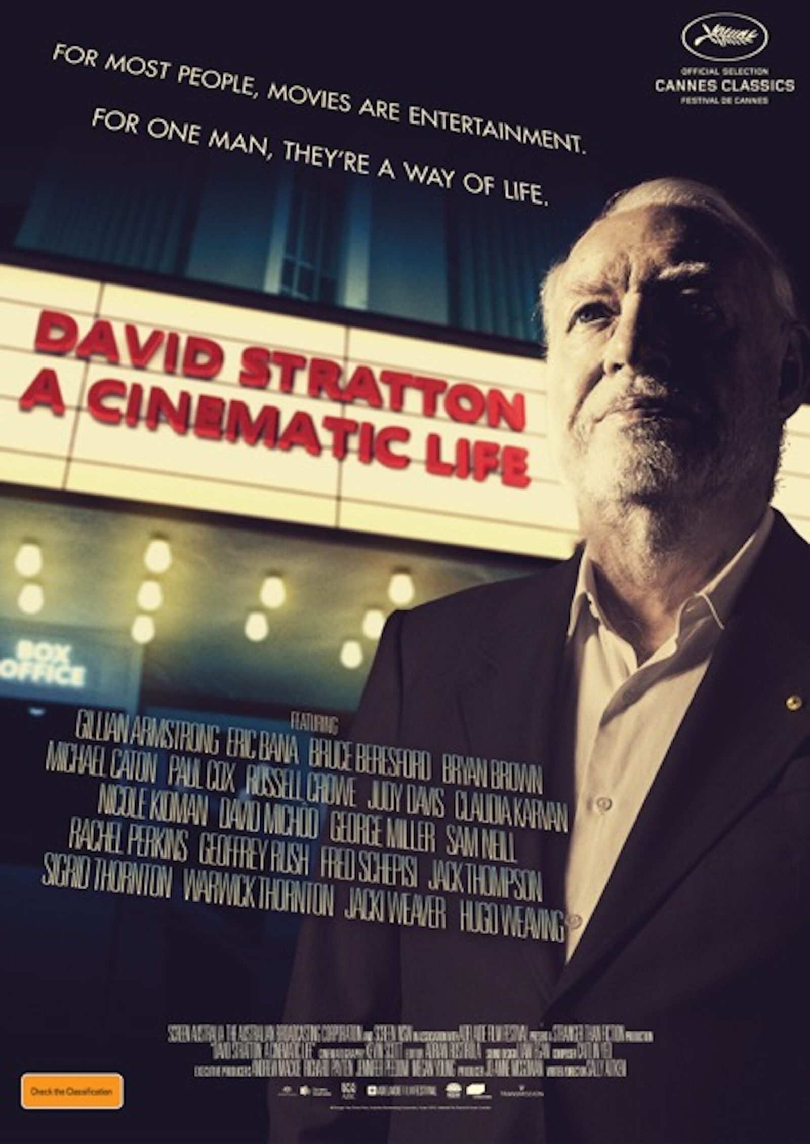 Critic David Stratton’s love affair with Australian cinema led him to understand himself and his adopted country. This is the glorious story of Australian cinema and its creators, told through the very particular gaze of a international cinephile.