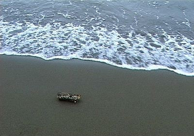 1- The camera accompanies a piece of wood with which the waves are toying, at the beach.