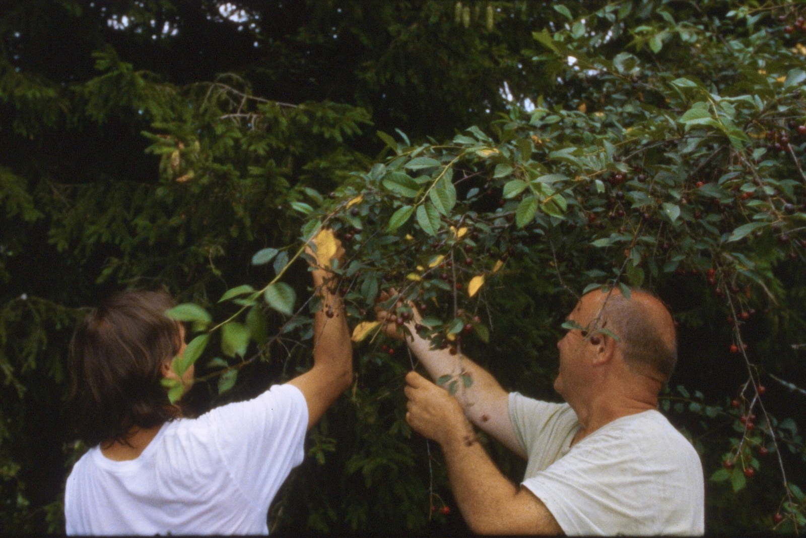 (CHERRIES)A recently retired father invites his son to help him with the cherry picking in the garden. The father is in no hurry to finish the cherry job though, as he tries to catch up with his son. The cherries remain in the background.