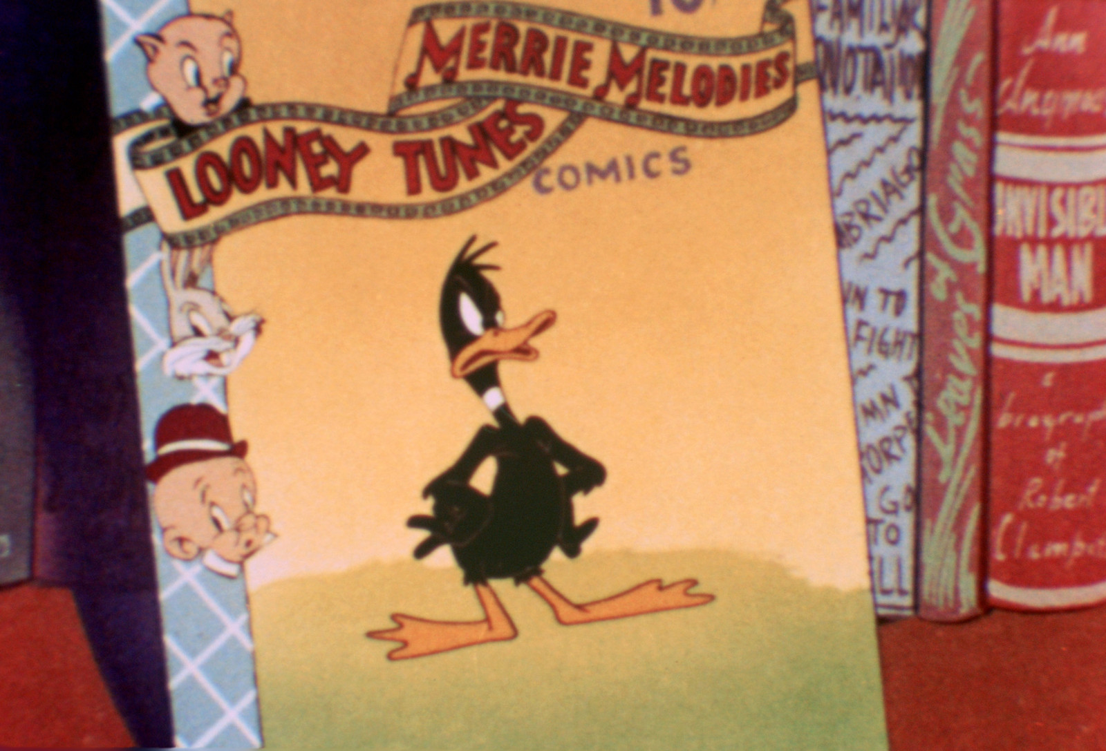 (LA REVUE LITTÉRAIRE)Revue littéraire est un cartoon Looney Tunes réalisé par Bob Clampett en 1946. Alors que les personnages des livres d’une librairie prennent vie la nuit, Daffy Duck chante et danse avant que le Grand Méchant Loup ne l’attrape.