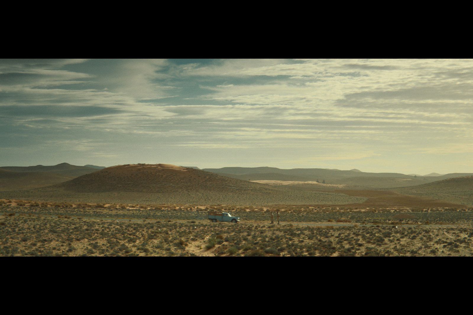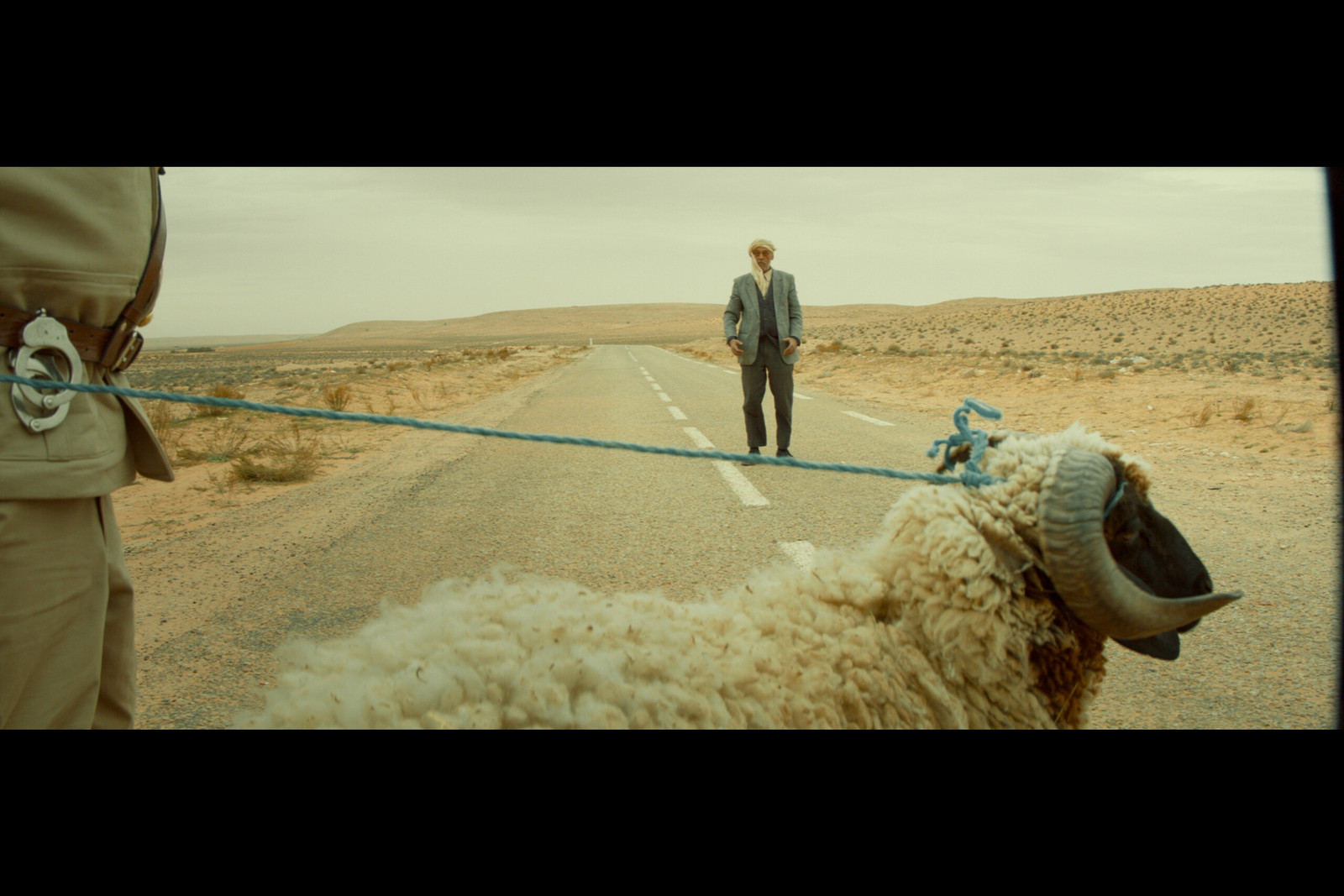 Le long d’une route du désert tunisien, un vieil homme et son petit-fils à bord d’un vétuste camion transportant des moutons se font immobiliser par deux gendarmes. Pour qu’ils puissent repartir, la situation débouche sur la proposition d’un curieux « marché »…