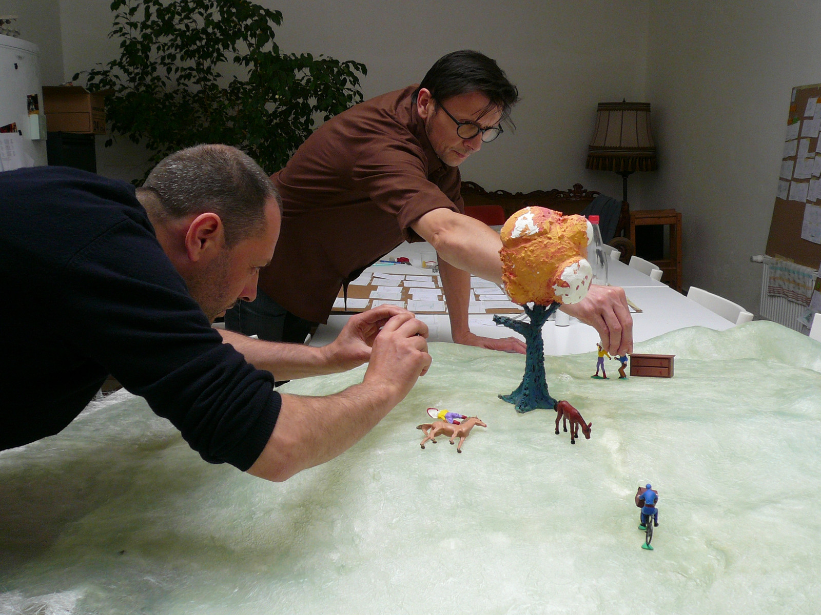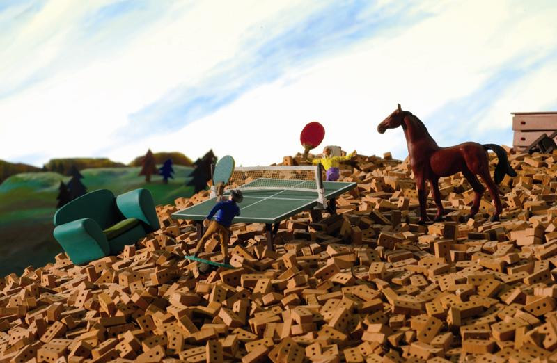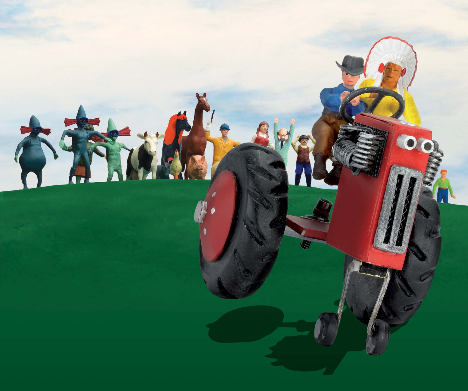 Cowboy et Indien sont des professionnels de la catastrophe. Dès qu’ils ont un projet, le chaos sort de sa boîte. Cette fois, ils veulent souhaiter un joyeux anniversaire à Cheval. Quel cadeau ? Un barbecue à faire soi-même ! Belle idée, sauf que la commande dérape, et que Cow-boy et Indien se font livrer un milliard de briques ! Ce n’est plus un anniversaire, c’est un tsunami ! La maison de Cheval disparaît sous les briques, écrasée. Il faut la reconstruire ! Tu parles d’un anniversaire ! Surtout que des voleurs s’emparent des murs dès qu’ils sont bâtis ! Décidemment, Cheval ne pourra jamais profiter de ce jour spécial pour rejoindre la pouliche qu’il aime, Madame Longrée, et qui donne des leçons de piano au conservatoire d’à côté. Au lieu de cela, il devra affronter d’improbables créatur