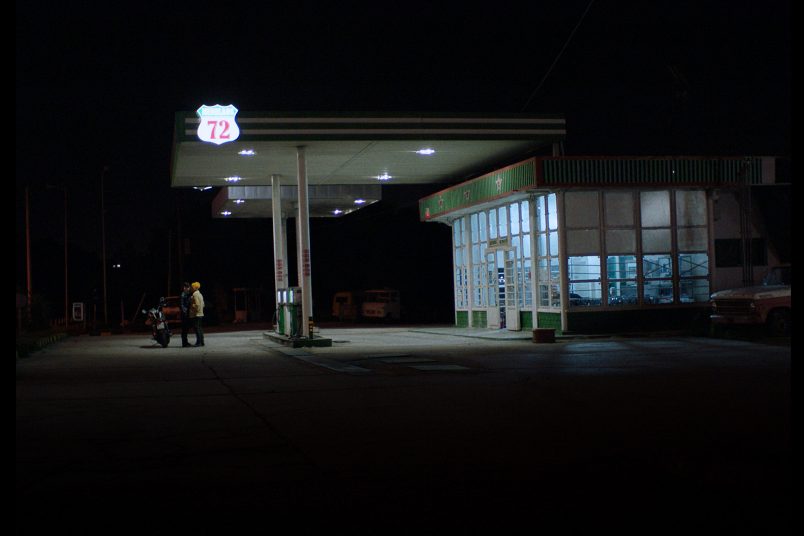 Deux inconnus se rencontrent pour la première fois, la nuit, dans une station-service perdue.
