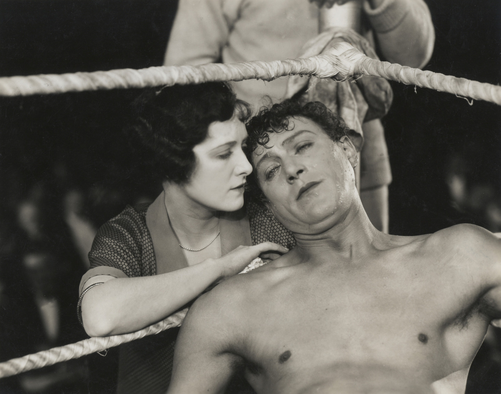 (LE MASQUE DE CUIR)Hitchcock a affirmé qu’après The Lodger, ce serait le prochain film d’Hitchcock. Il est difficile d’être en désaccord avec cela. L’histoire d’un vulgaire boxeur de fête foraine, dont la petite amie tombe sous le charme d’un boxeur australien professionnel, est racontée avec de nombreux éléments formels expressionnistes, que l’on peut probablement attribuer au séjour d’Hitchcock en Allemagne. Le titre lui-même est ambivalent, se référant à un ring de boxe, l’anneau de mariage et le bracelet serpent secrètement donné par le champion australien. Il s’agit du seul et unique scénario original écrit par Hitchcock, mais son économie et sa précision révèle déjà un réalisateur confiant dans sa maîtrise du medium.
